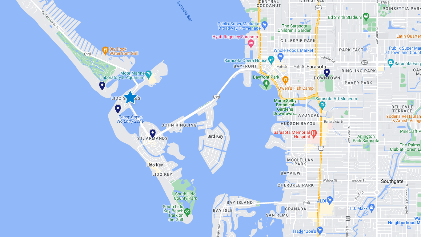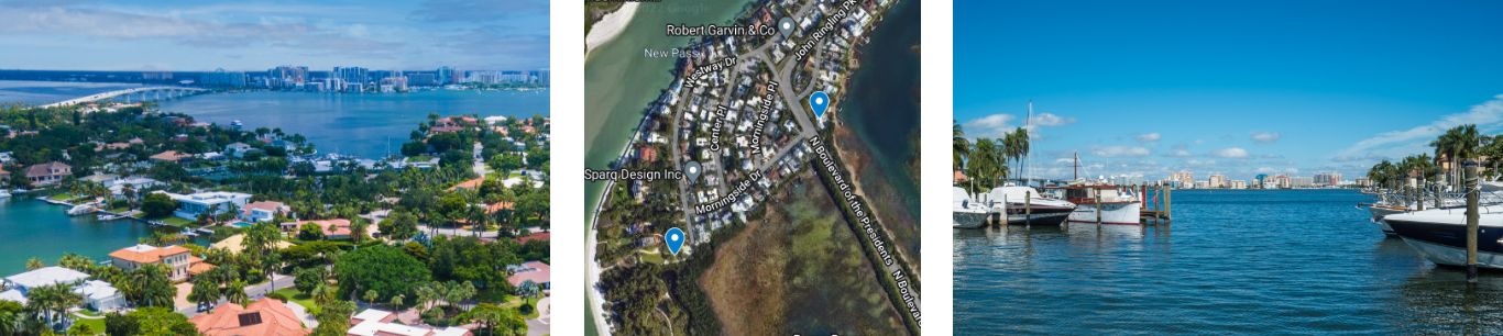 The lights of downtown Sarasota and the Ringling Bridge provide a spectacular backdrop for nighttime relaxing and entertaining, and the daylight hours present the opportunity to enjoy the deeded beach access to the pristine sands of north Lido beach or a day spent watching dolphin and manatee play from the back yard.